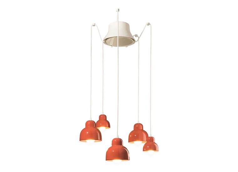 Berimbau 5 Light Pendant Light by Ferroluce is crafted from ceramic and finished in orange, bringing elegance and character to any space.