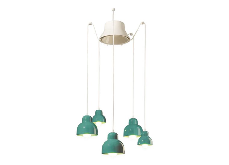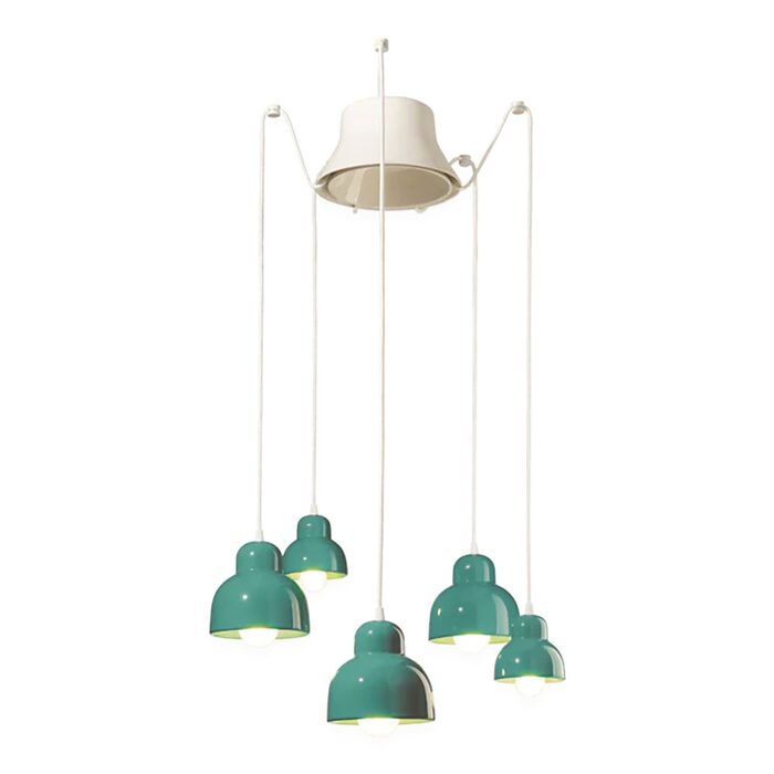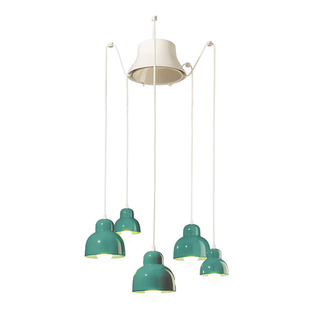 Berimbau 5 Light Pendant Light by Ferroluce is crafted from ceramic and finished in turquoise, bringing elegance and character to any space.