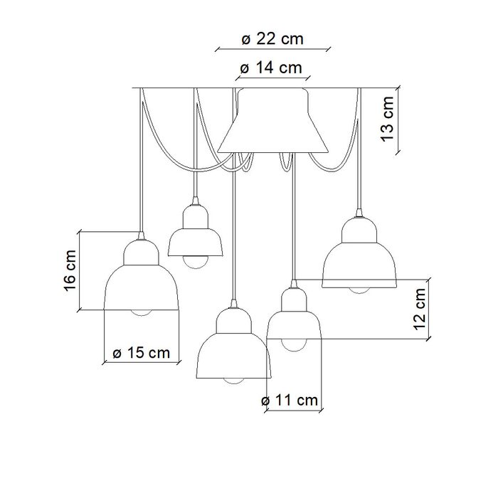 It features three E27 lampholders (53W max) and two E14 lampholders (28W max), offering versatile lighting options.