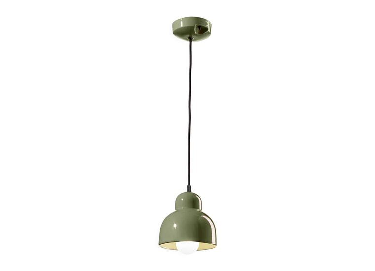 The Berimbau Large Pendant Light by Ferroluce is crafted from ceramic and features a bold turquoise finish.