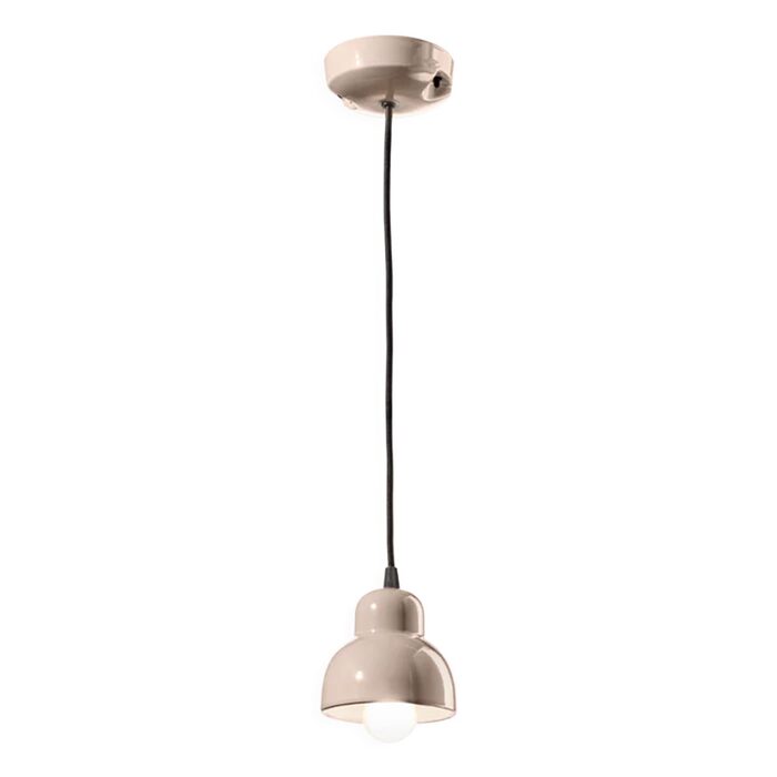 The Berimbau Small Pendant Light by Ferroluce is crafted from ceramic and features a bold sand grey finish.