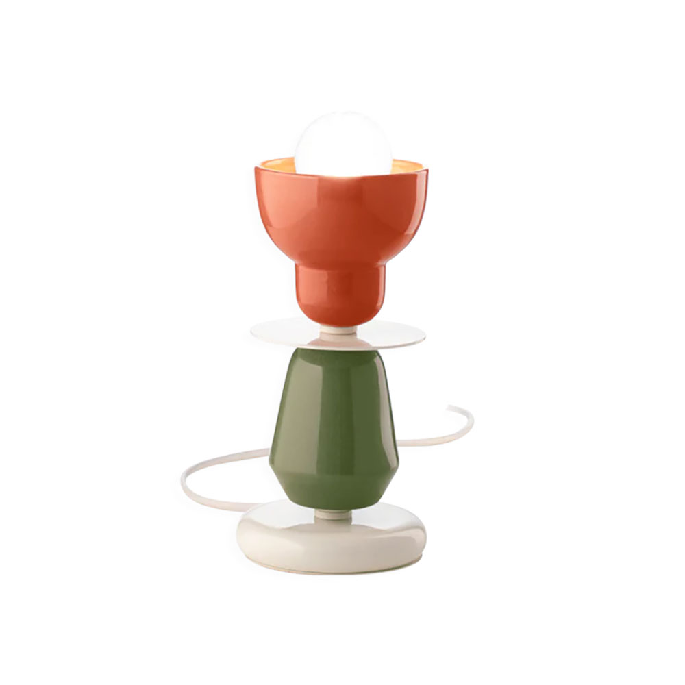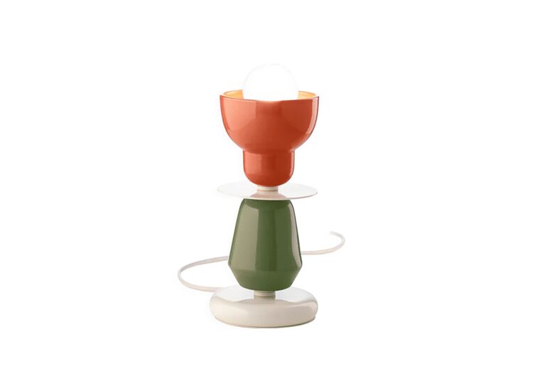 Berimbau Table Lamp by Ferroluce features a striking combination of orange and sage green, bringing a bold yet elegant touch to any space.