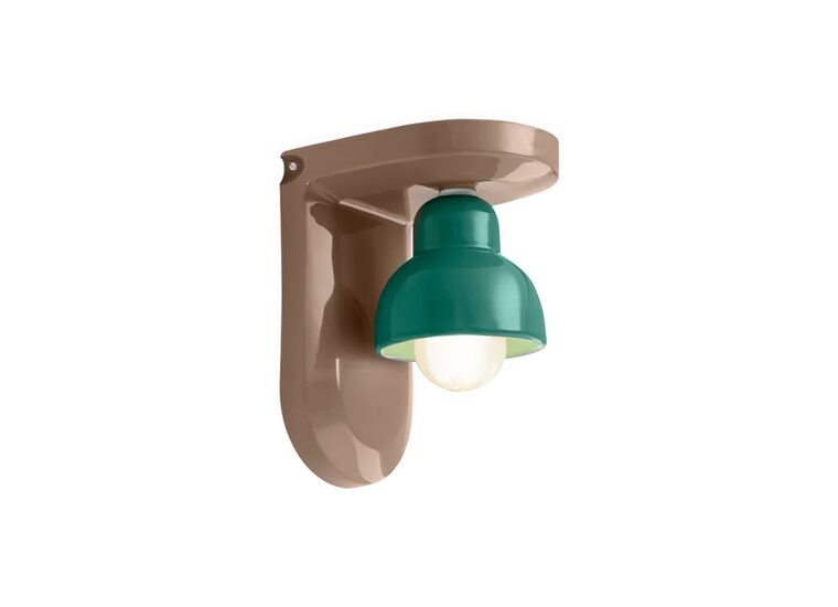 Berimbau Ceramic Wall Light by Ferroluce features a unique blend of mocha brown and turquoise, adding a vibrant yet sophisticated touch to any space.