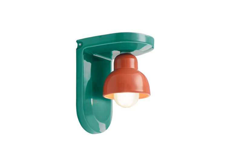 Berimbau Ceramic Wall Light by Ferroluce features a unique blend of turquoise and orange, adding a vibrant yet sophisticated touch to any space.