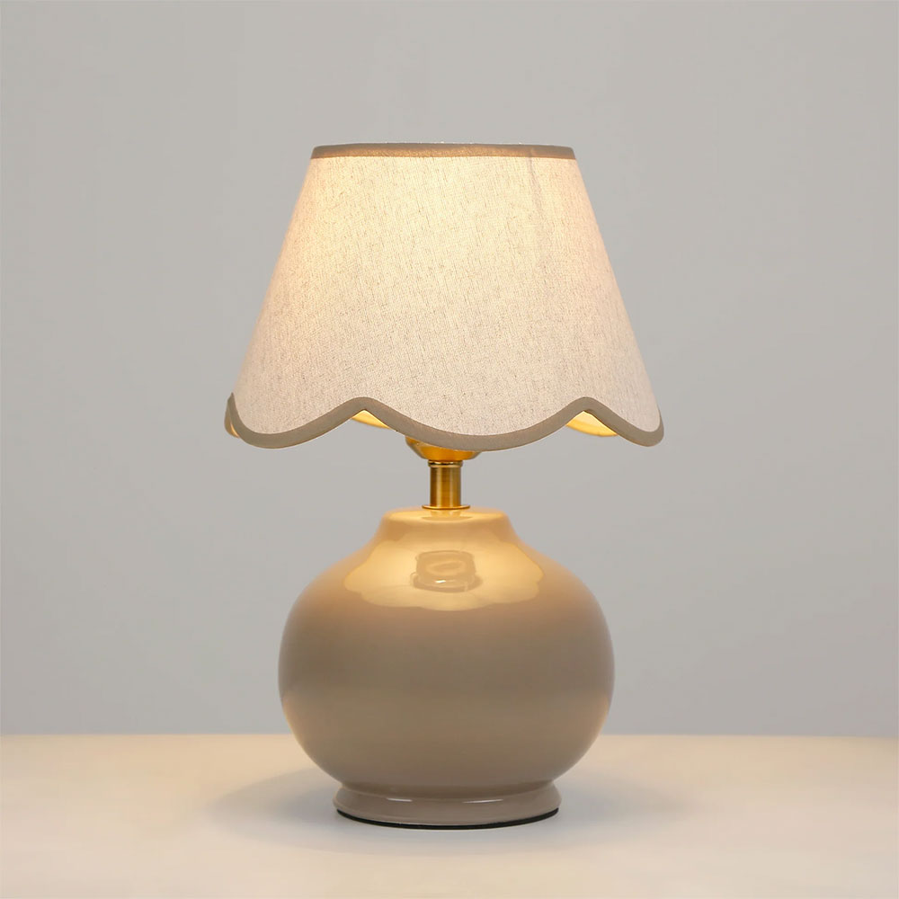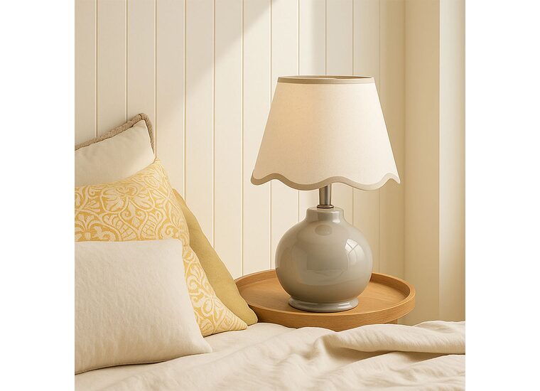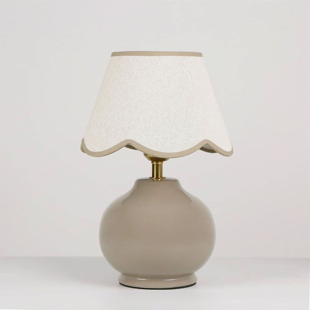 Illuminate your space with the versatile Bibury Table Lamp, featuring a stunning ceramic base available in Blue, Grey, and topped with a timeless linen shade adorned with a subtle, modern scallop design.