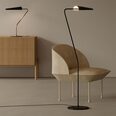 Bion Floor Lamp by Aromas Del Campo features a marble base and sleek body topped by a fanned corrugated steel shade.