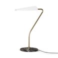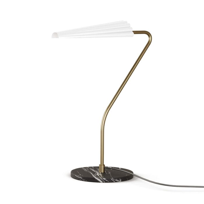 Bion Table Lamp by Aromas Del Campo features a marble base and sleek body topped by a fanned corrugated steel shade.
