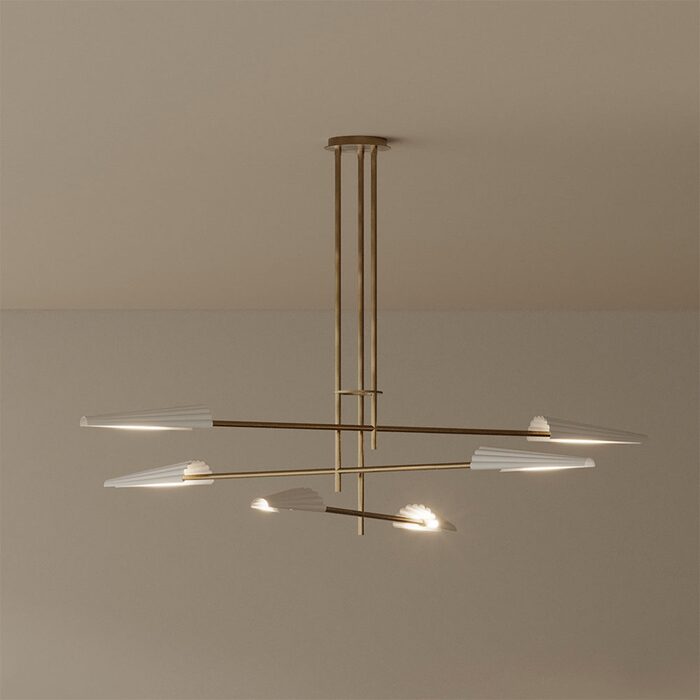 Bion Pendant Light by Aromas Del Campo features a sleek body finished with fanned corrugated steel shades.