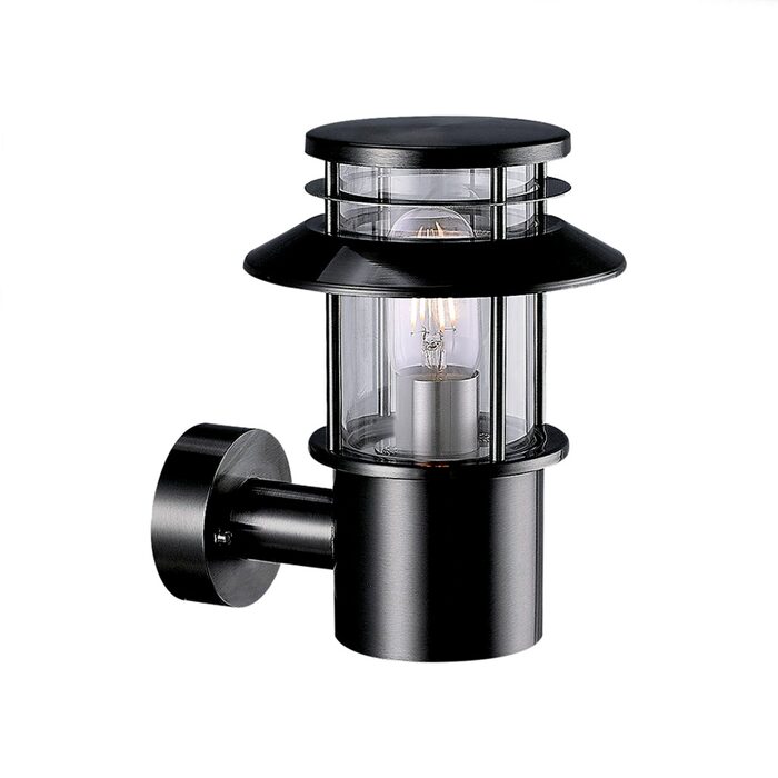 Birk wall Light is a black 304 stainless steel, with durable low maintenance E-coating. Also comes as a matching bollard.