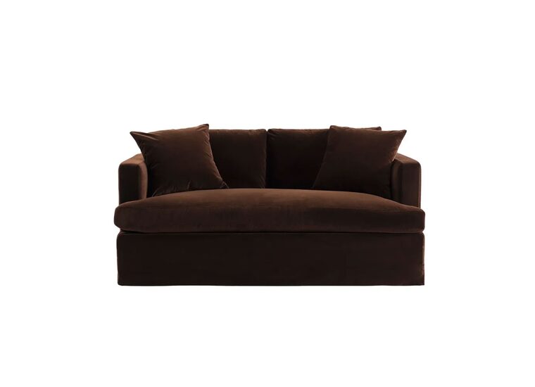 The Birkshire Slip Cover 2 Seater Sofa in Dark Chocolate Velvet offers a refined balance of contemporary styling and classic comfort.