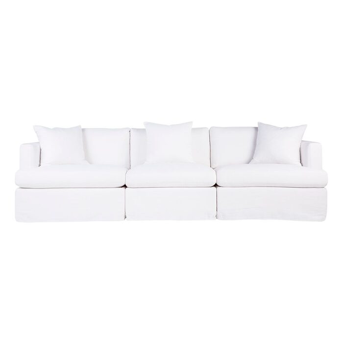 White linen slip cover modular sofa.