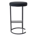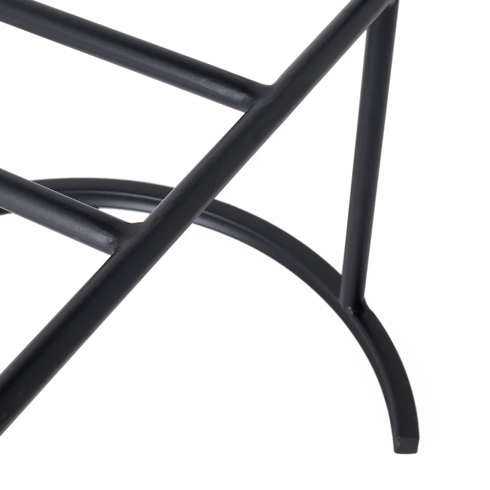 The black powder-coated iron frame features a streamlined silhouette with an integrated footrest.