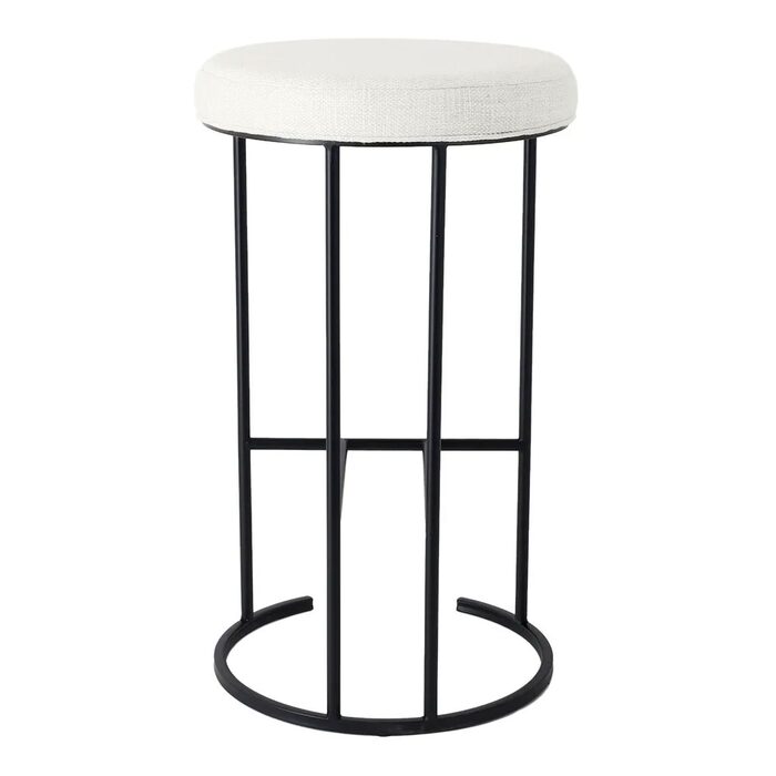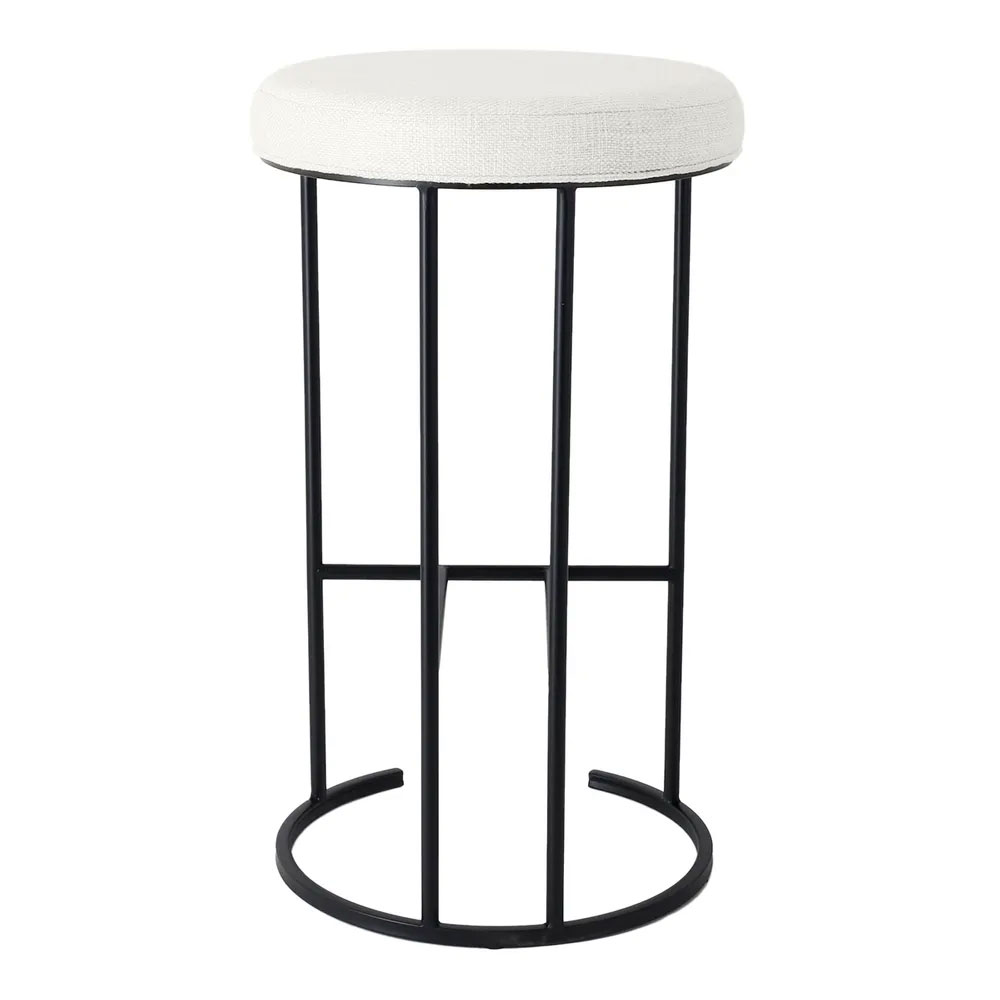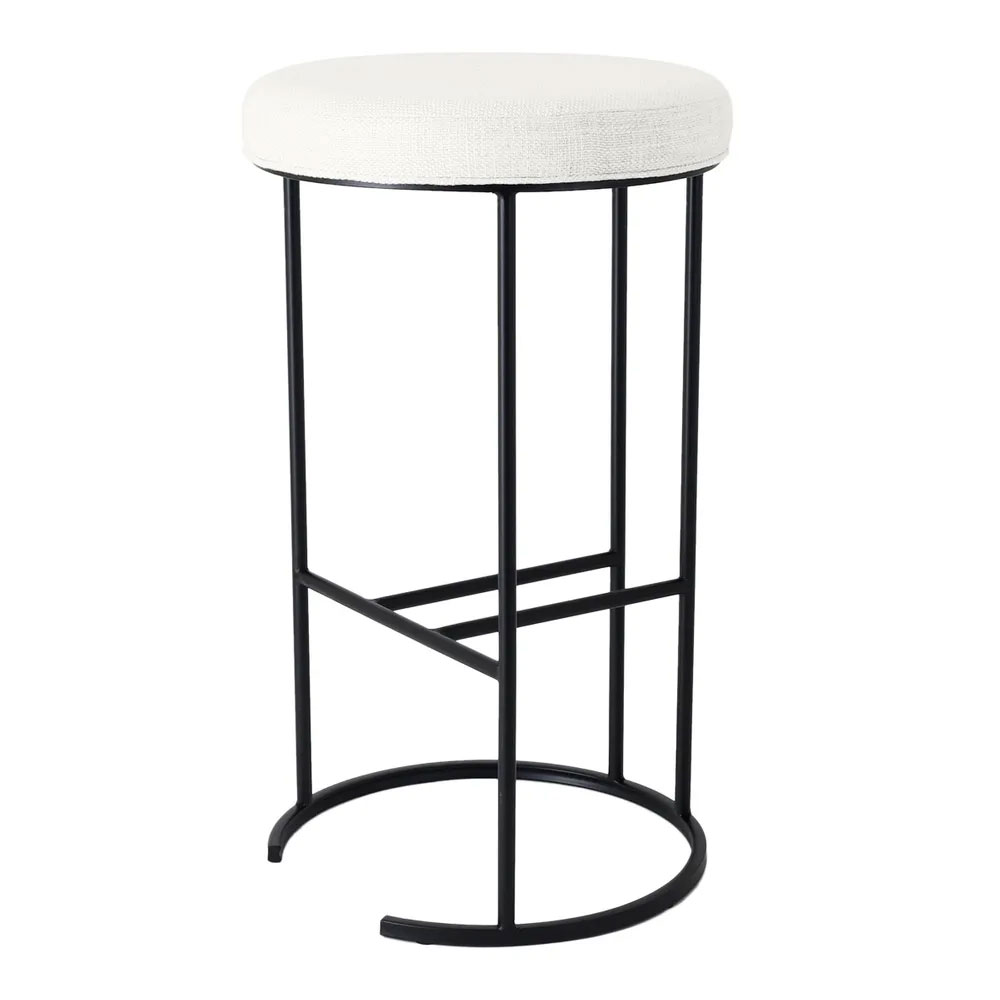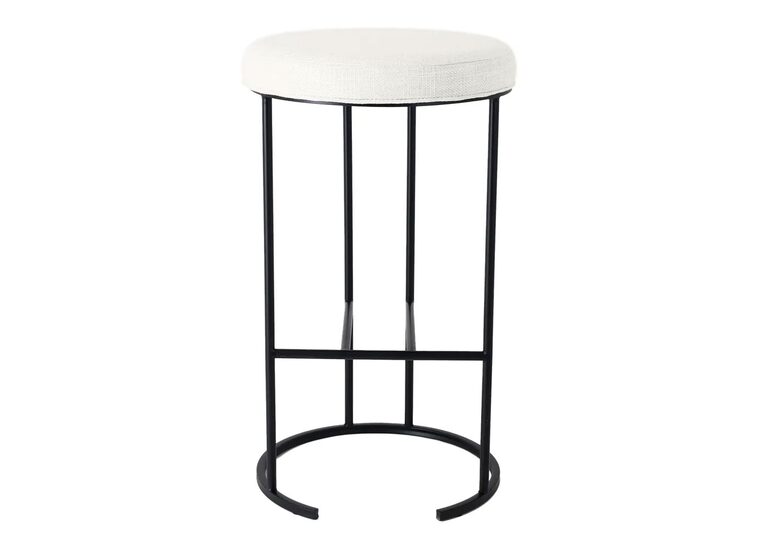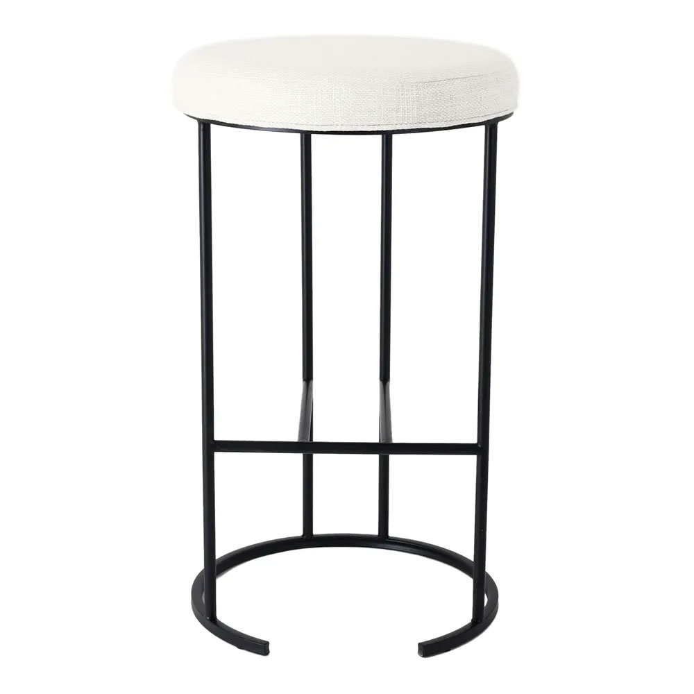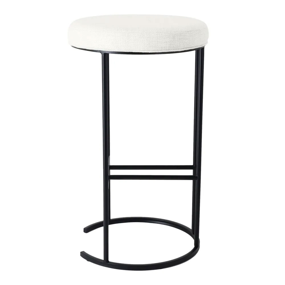 Crafted for durability and style, this 76cm high bar stool boasts a plush round seat in luxurious linen-blend fabric, available in Natural or Black Linen.