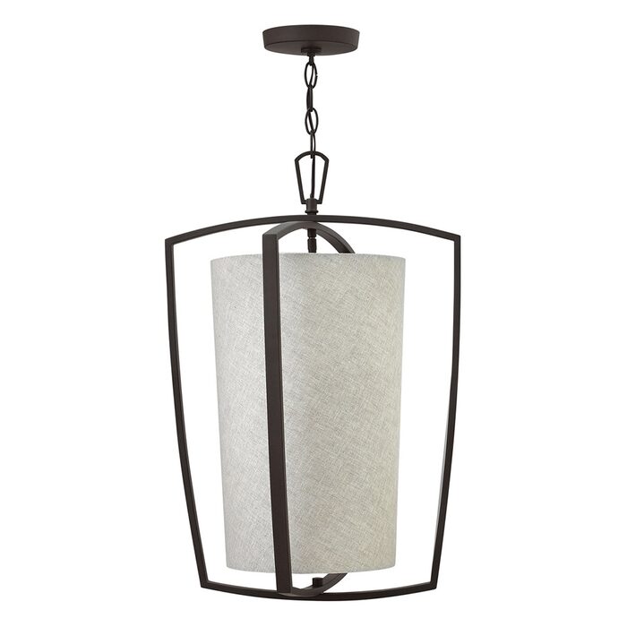 The Blakely collection defines soft modern elegance with a sleek intersecting outer frame that seamlessly encloses a sophisticated heathered fabric drum shade.