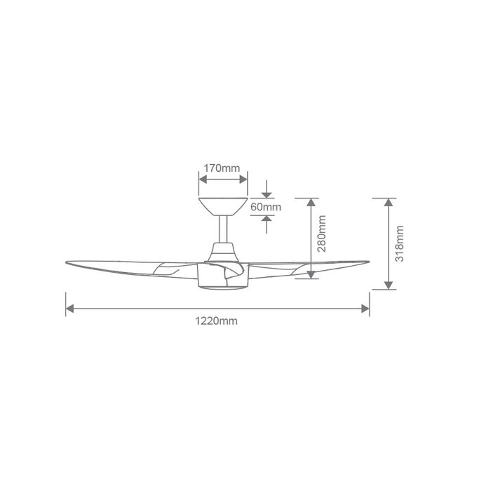 Available in a 3 Blade 48” 1220mm blade length or 4 Blade 52” 1320mm blade length with the choice of an 18W LED CCT Switchable light Kit as an optional accessory if a light option is required.