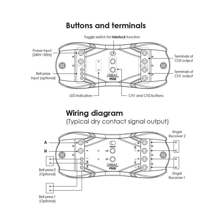 - Two channel relays to create multiple dry contact signal outputs.