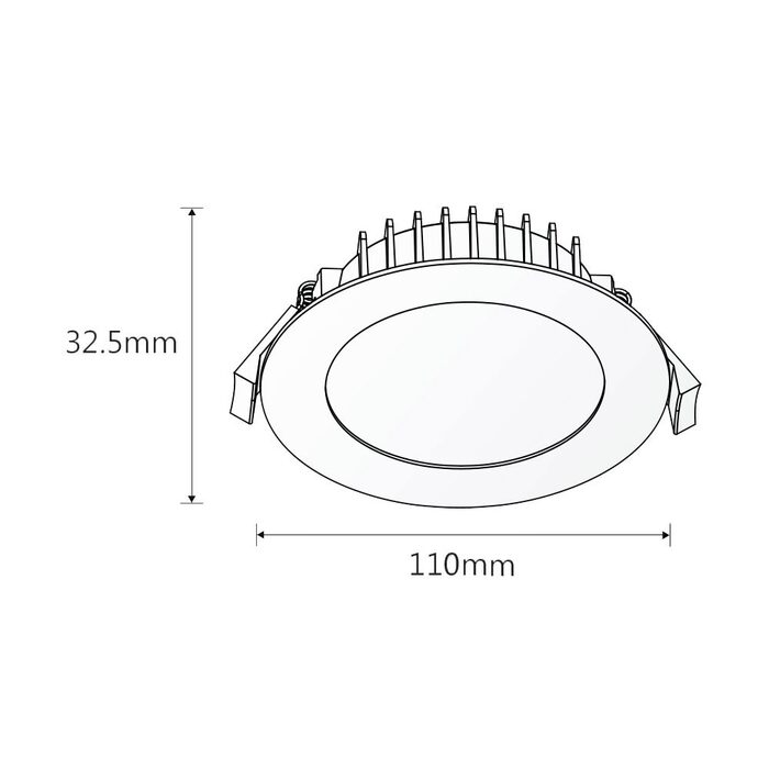 - Kit includes 10W SMD Tricolour switchable LED downlight, 110mA dimmable LED driver with 900mm flex and plug