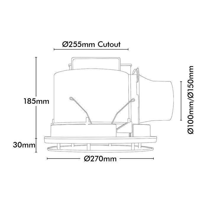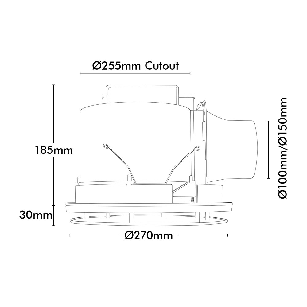 - Outlet Diameter: 100mm & 150mm (Duct not included)