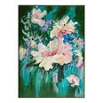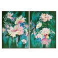This vibrant floral abstract painting set of two is a stunning impressionist artwork, bursting with bold pinks, whites, and blues against a lush teal backdrop.