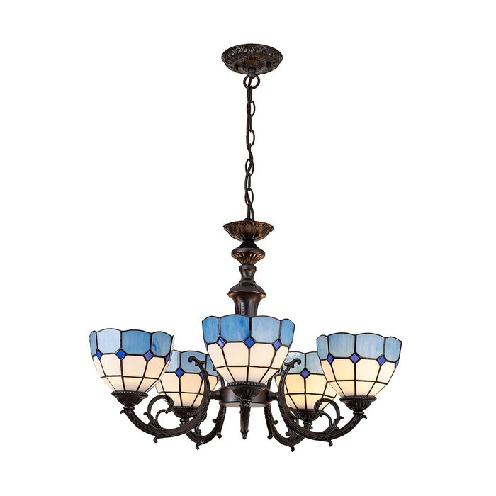 The Blue & White Geometric pendant is a colourful Tiffany style lamp that combines many pieces of art glass to create a stunning and complex design.