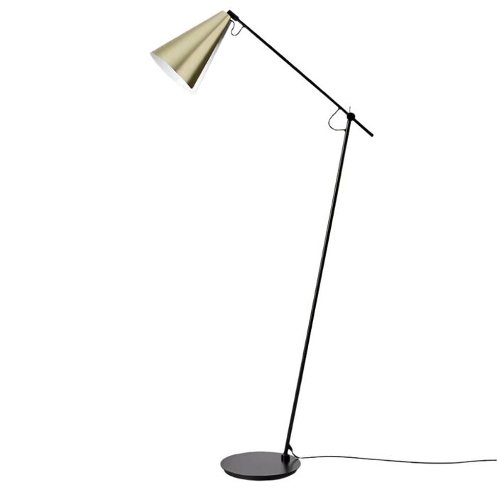 Boa Floor Lamp Design by Fornasevi Metallic Matt Black Body with Gold or Matt Black Shade Finish.
