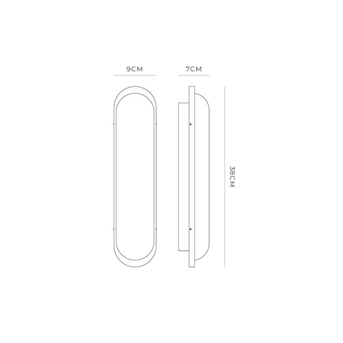 Note: The elongated white glass shade is encased by an aluminium frame available in either an Old Brass or Iron finish.