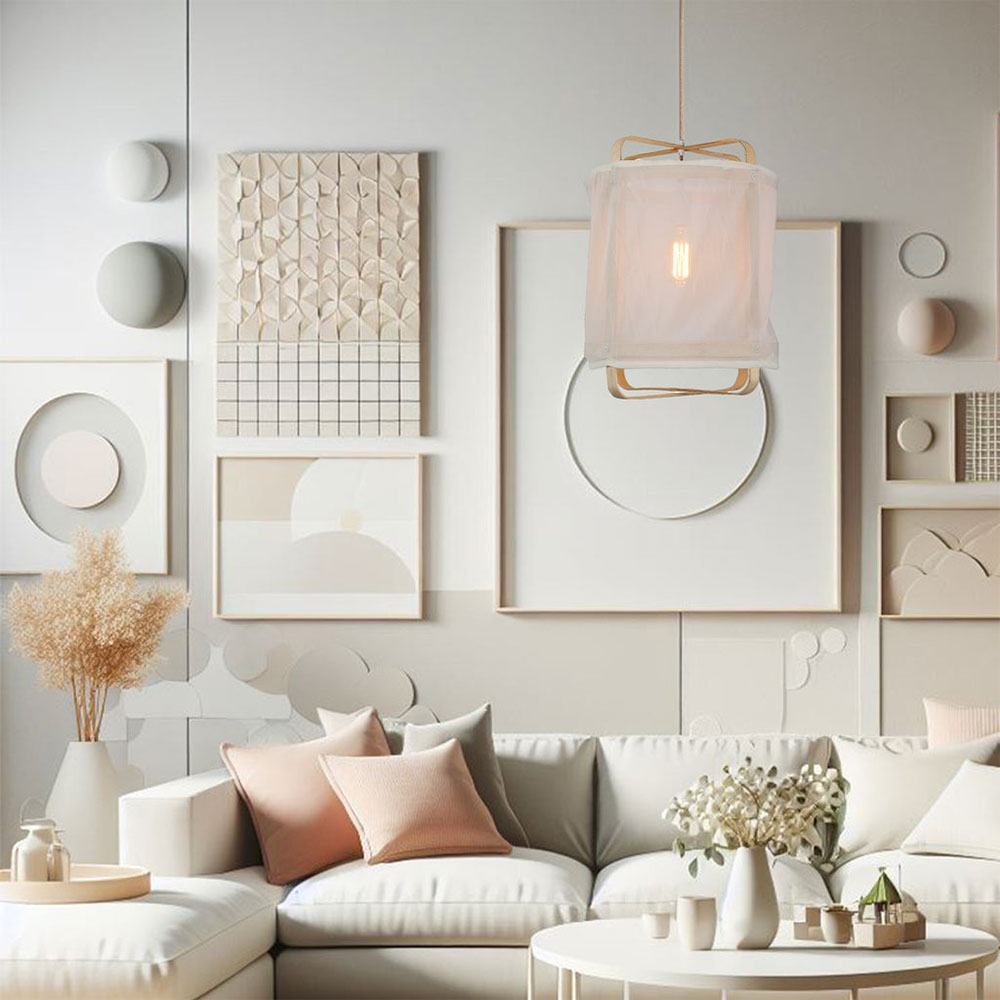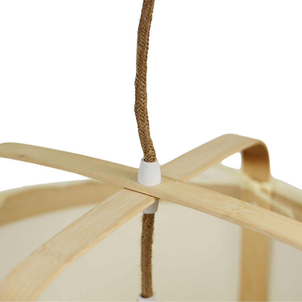 Its large size and translucent chiffon material create a soft, ambient glow while the bamboo fixture adds a touch of nature to your decor.