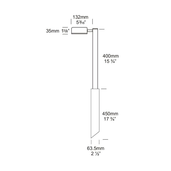 This luminaire has a fully adjustable arm allowing 360 degree rotation and 0–90 degree elevation.