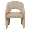Upholstered in textured brown fabric, its curved silhouette and cut-out back create an elegant, organic shape.