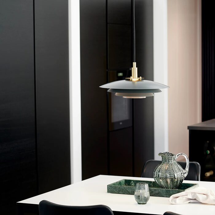 Scandinavian clean and soft lines. Multiple layered shades create a soft, diffused light. White coloured inside for optimal light.
