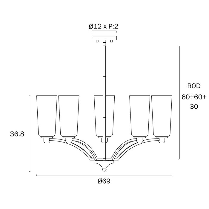 - Lamp Base: 5 x E27 / ES Edison Screw