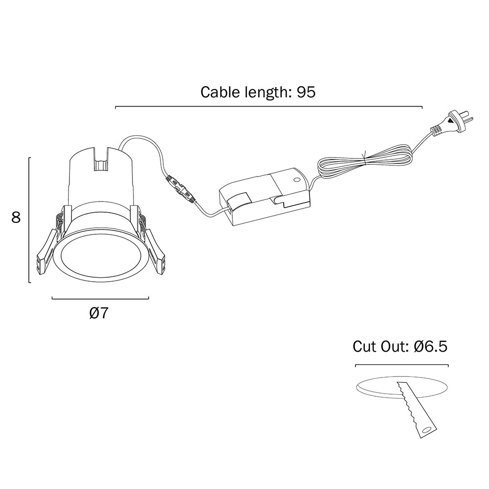 - Cutout: 65mm