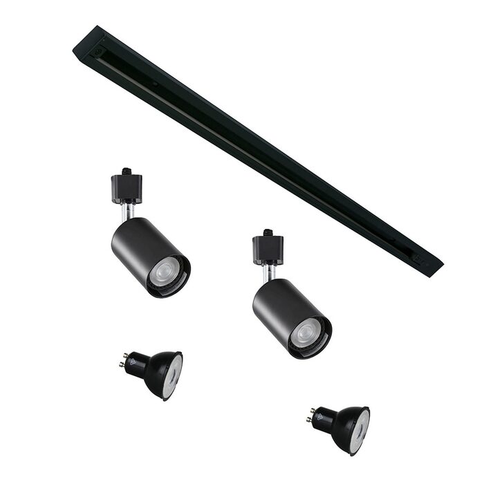 Includes TRACK 1M, 2 BRIDGE TRACK SPOTS and 2 GU10 LED bulbs. 240V single circuit, 3-wire H style track.