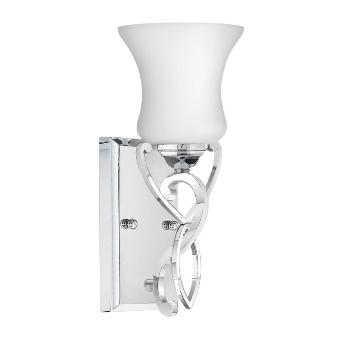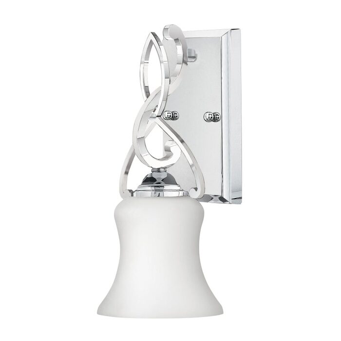 Brooke’s updated traditional look features a minimalist forged scroll design in Polished Chrome that elegantly complements its etched opal glass.