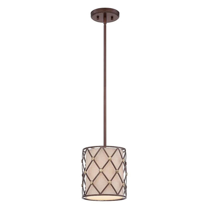 The Copper Canyon finish contrasts beautifully with the enclosed tan fabric shade.