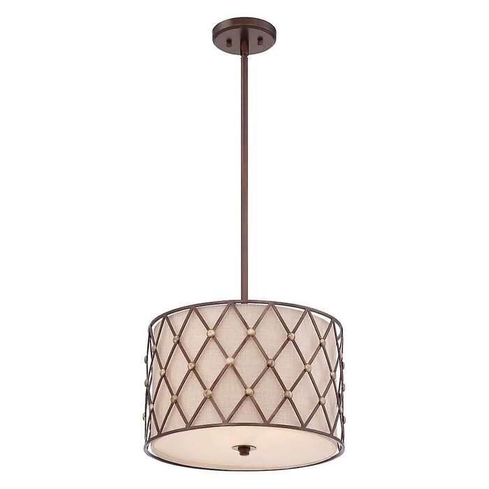 The Copper Canyon finish contrasts beautifully with the enclosed tan fabric shade.