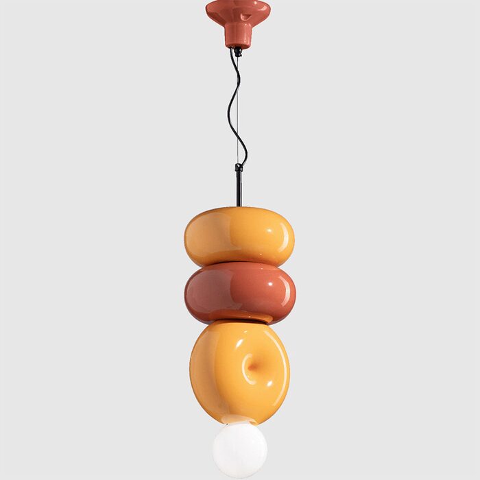 Bumbum Pendant Light by Ferroluce features a captivating fusion of ceramic craftsmanship and vivid, glossy finishes.