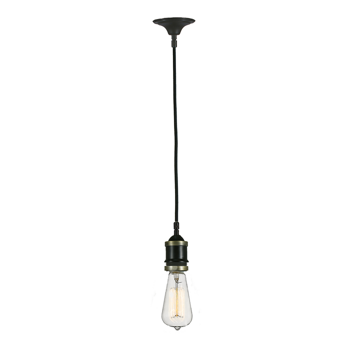 Black lamp holder with Bronze highlights and a black cloth cord with a ceiling canopy in Black and adjustable cord.