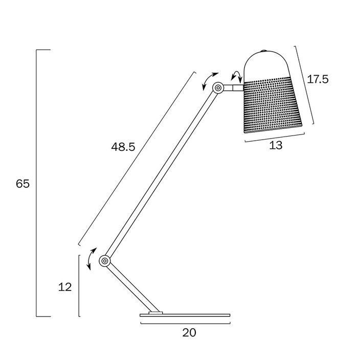 The Cadena Table and Floor Lamp, with a micro perforated shade, offers adjustable angles for perfect illumination.