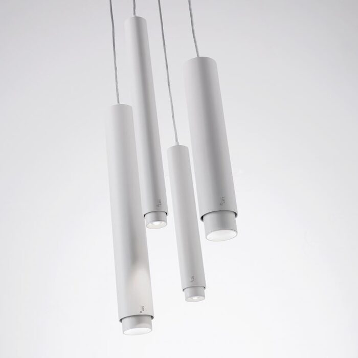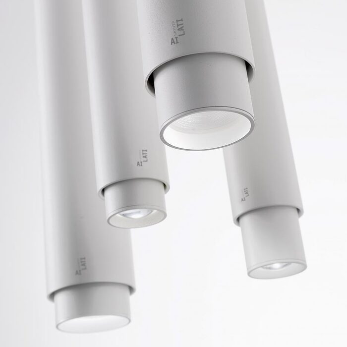 The Caleido range is collection of pendants, ceiling and wall lamps with a matt white or dark grey painted aluminium texture, a clear nish polycarbonate diffuser and a LED light source.
