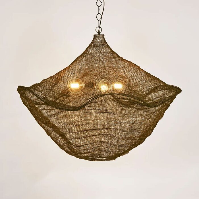 The shade is made of loose weave aluminum and is suspended by adjustable cord and chain that allows you to customize the height of the lamp.