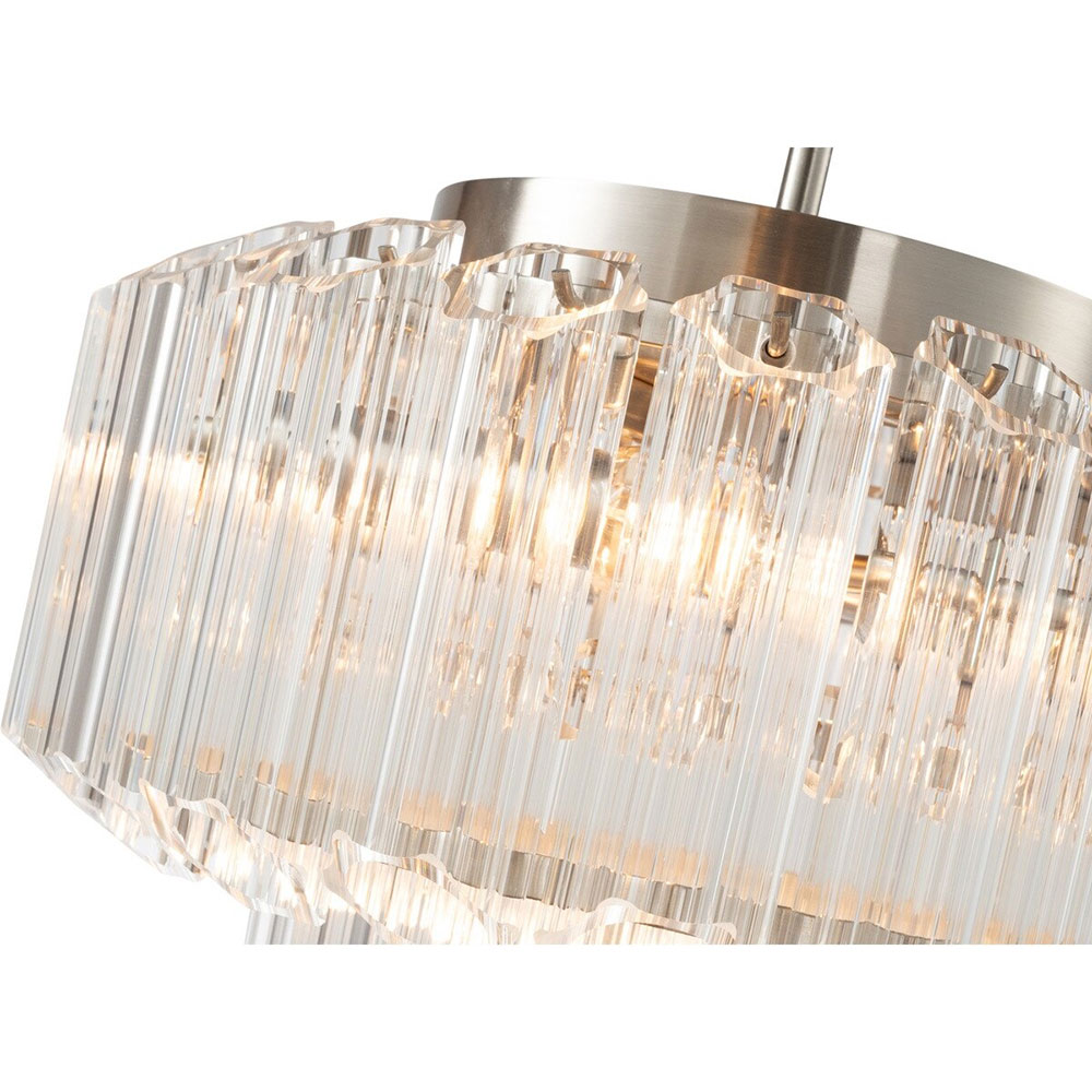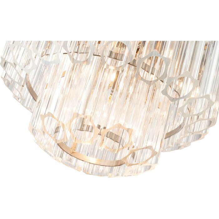 Featuring elegant tiers of tubular glass prisms, each piece creates a dazzling display of light and texture that instantly elevates any space.