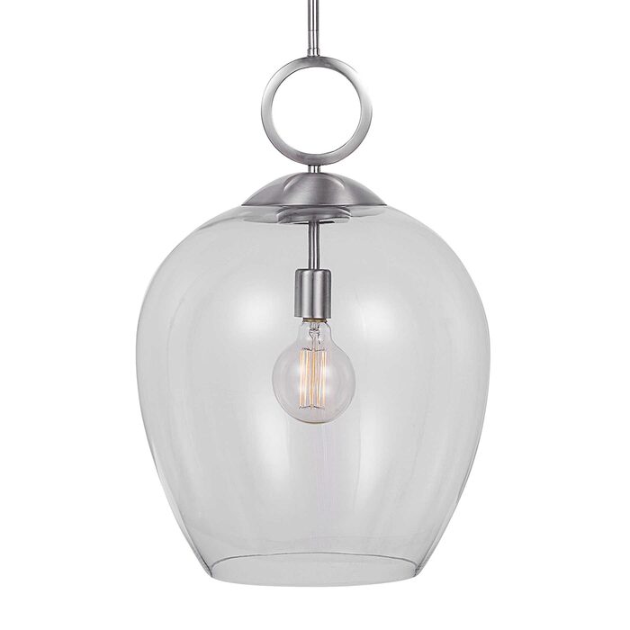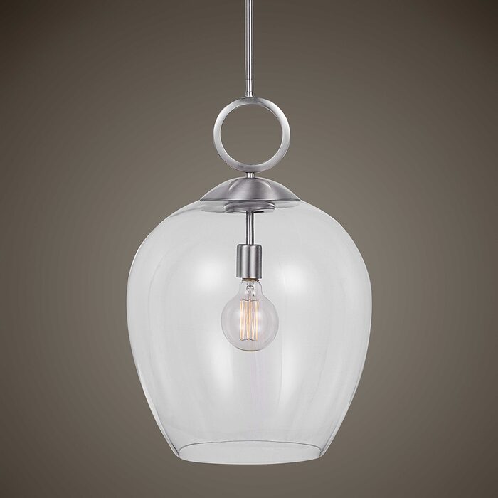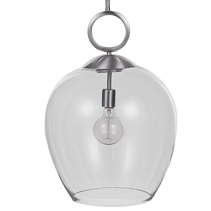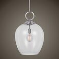 Simple elegance best describes the extra-large clear blown glass on this transitional pendant.