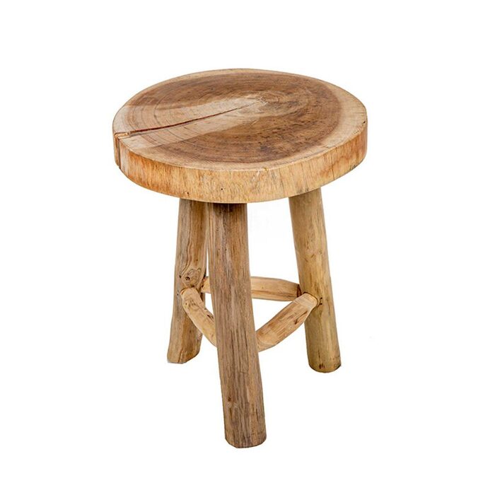 Sweet, petite, and full of character this teak wooden stool features all the unique natural grains, knots, and burrs of the wood.