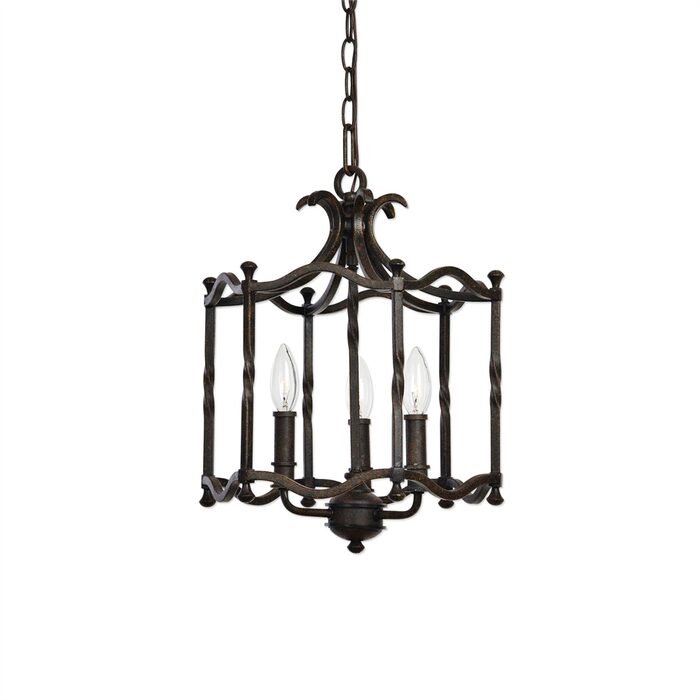 A traditional 3 Lt. pendant in a distressed rust iron finish with a slight texture, giving old world charm with a classic feel in a petite size that can be used as a single pendant or hung in multiples.