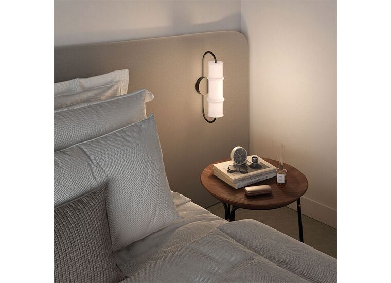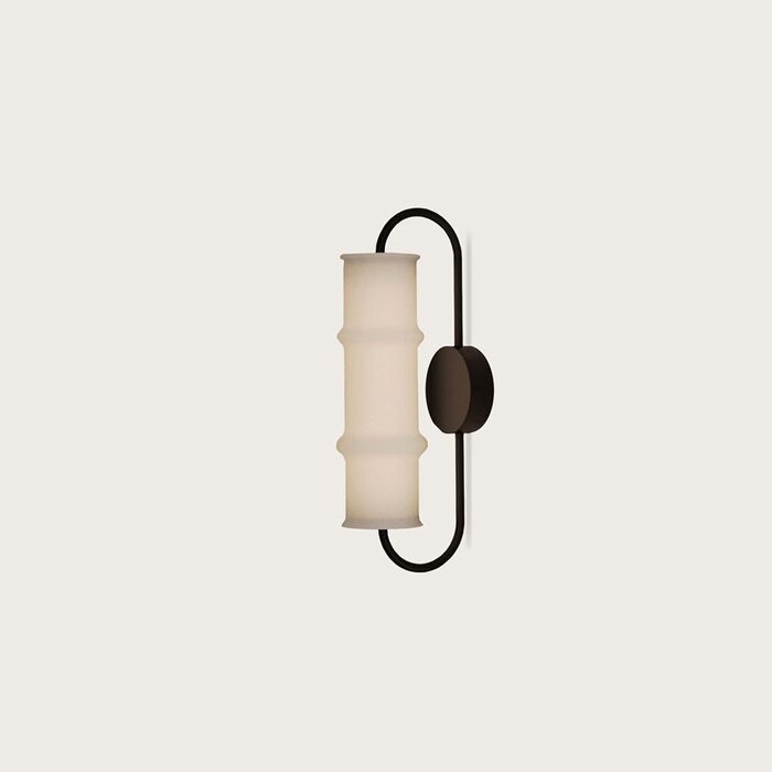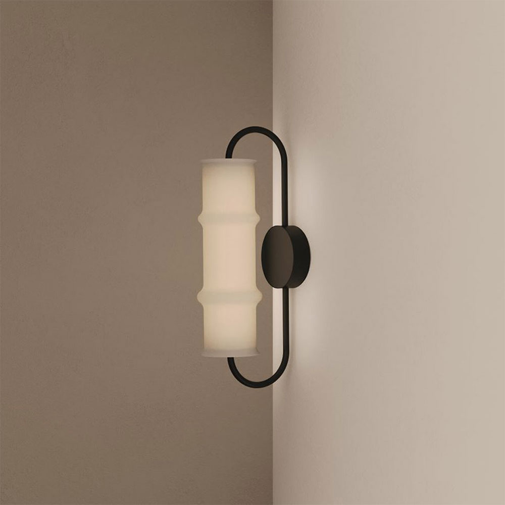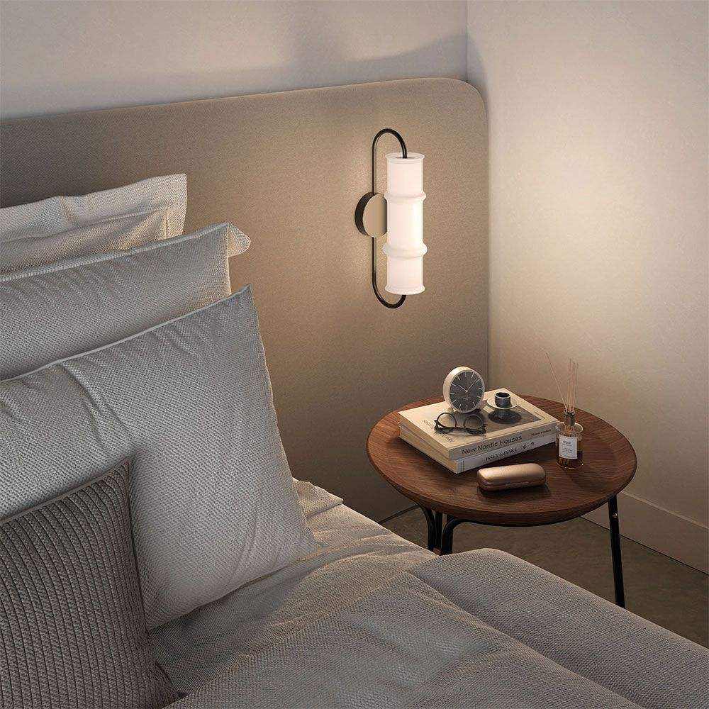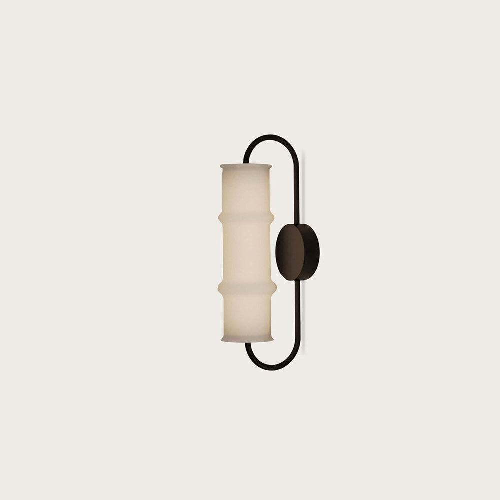 Canna Wall Light designed by Agus Gascón for Aromas Del Campo is crafted from opal glass and boasts a cylindrical shape that exudes timeless beauty.