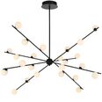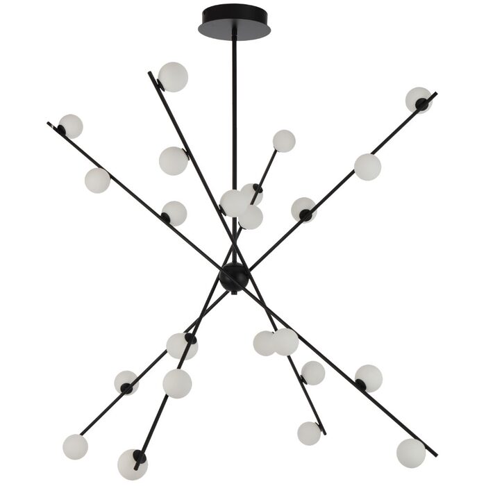 It comes in two sophisticated colourways: black and antique gold, featuring opal matte glass sphere shades that exude a modern yet timeless charm.