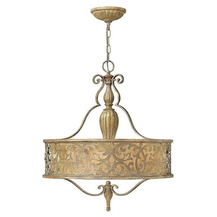 Carabel’s flourishing pierced metalwork creates a stunning artistic design in a luxurious Brushed Champagne finish.