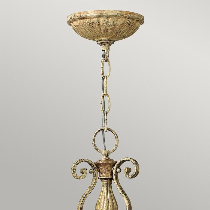 The elegant scroll detail inset ivory linen shades and etched diffusers add to the beauty of this collection.