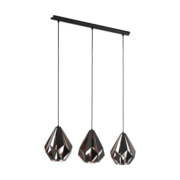 This Carlton 1 Black / Copper Pendant Light is fitted with 3 x E27 lamp holders which look fantastic with LED and carbon filament globes.